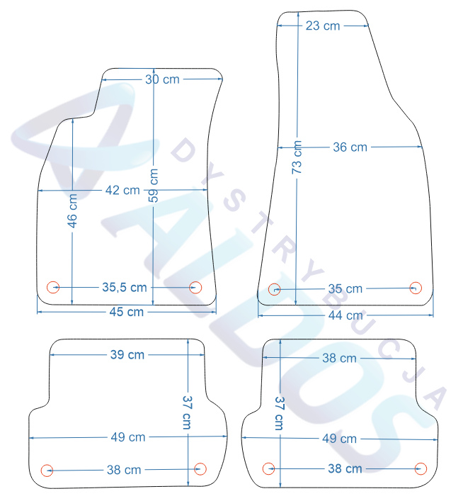 Dywaniki nie są oryginalnymi produktami OEM marki samochodu, a jedynie zamiennikami, które produkowane są przez Niemiecką Firmę PETEX.