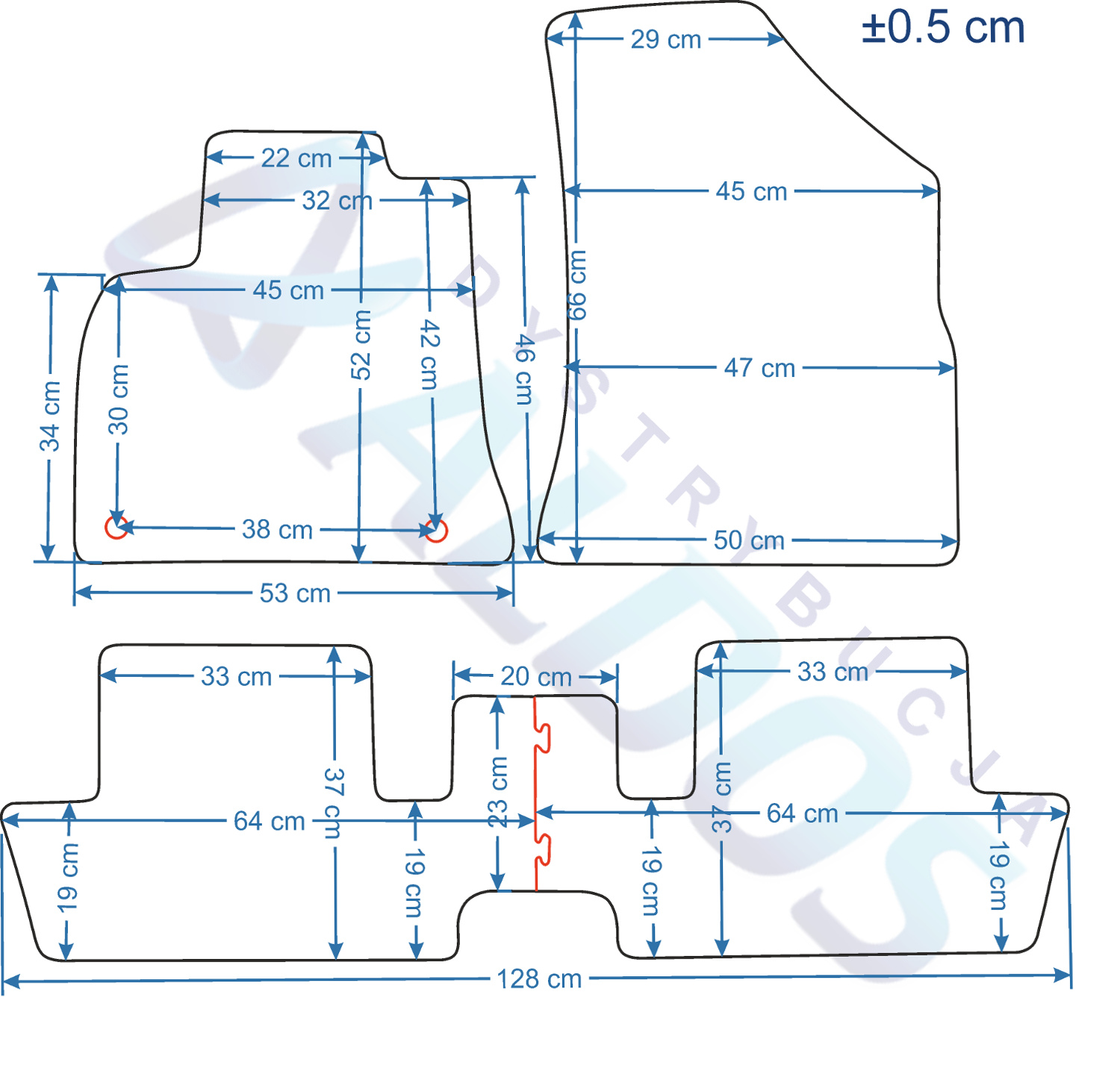 Dywaniki gumowe przeznaczone do modelu: