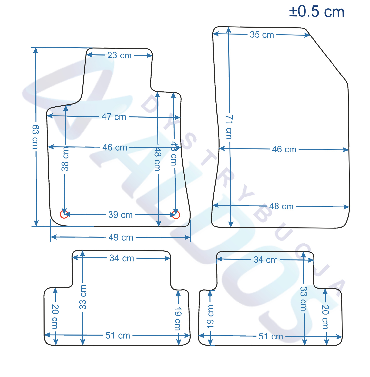 Dywaniki nie są oryginalnymi produktami OEM marki samochodu, a jedynie zamiennikami, które produkowane są przez Niemiecką Firmę PETEX.