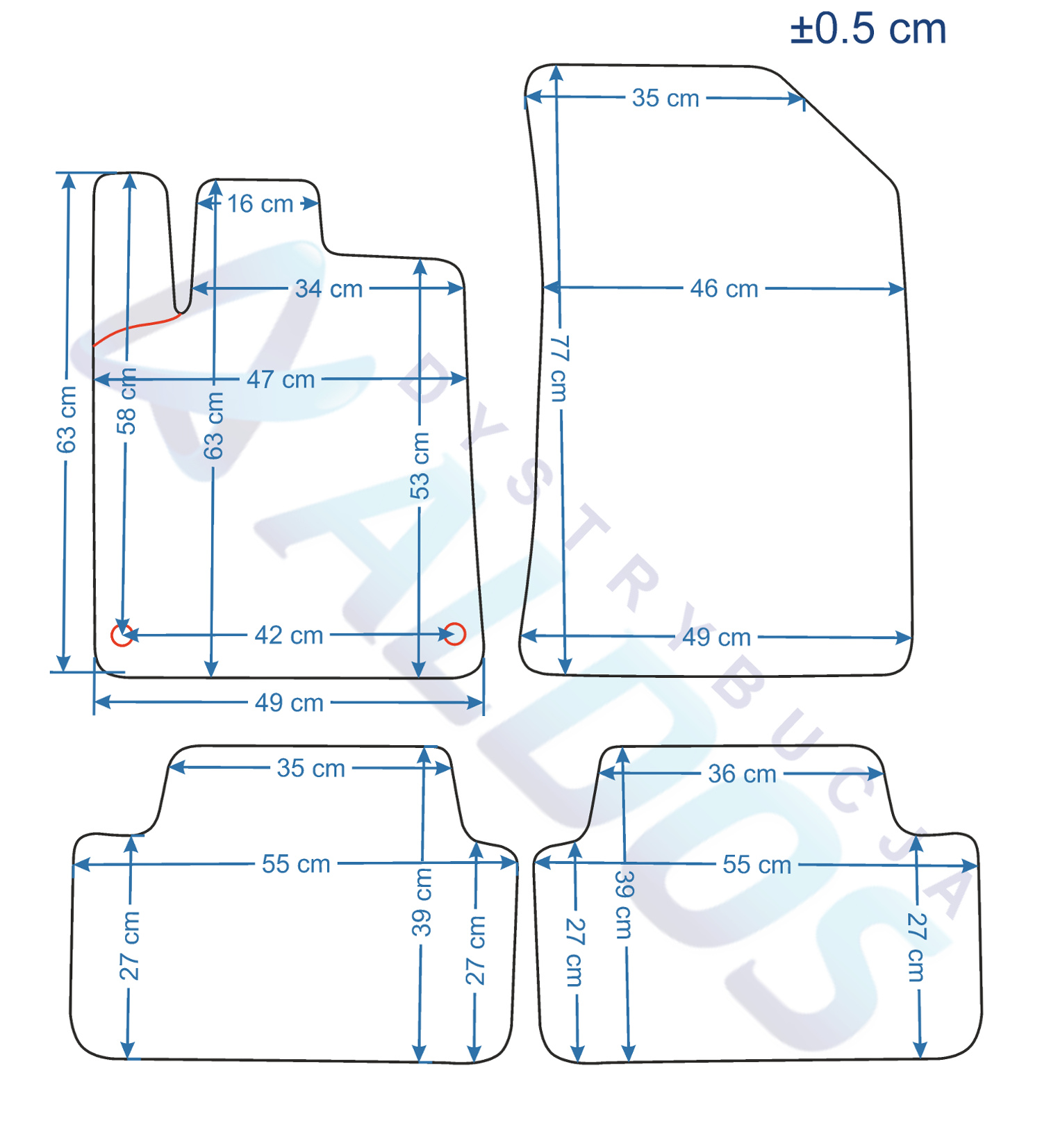 Dywaniki nie są oryginalnymi produktami OEM marki samochodu, a jedynie zamiennikami, które produkowane są przez Niemiecką Firmę PETEX.