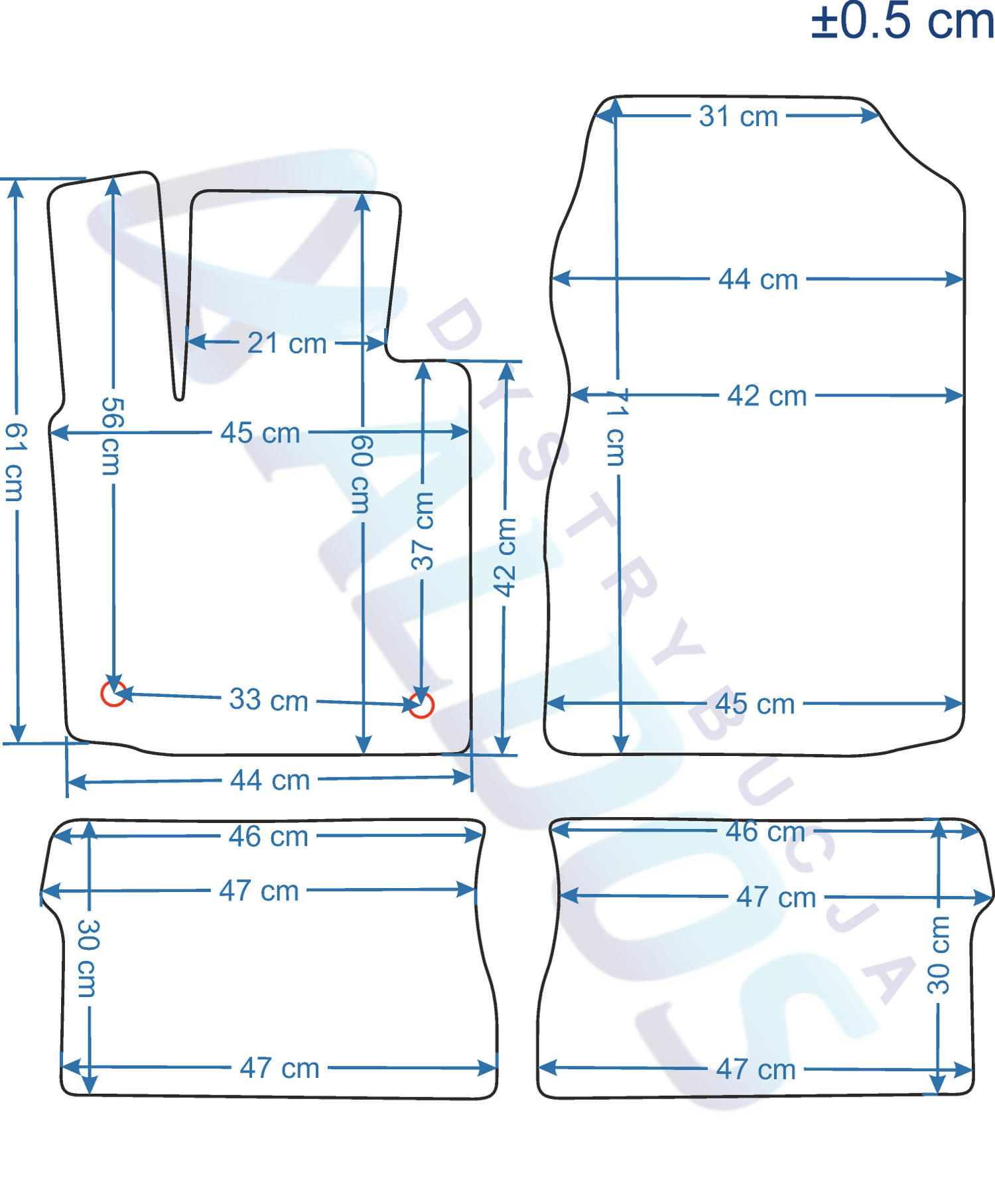 Dywaniki nie są oryginalnymi produktami OEM marki samochodu, a jedynie zamiennikami, które produkowane są przez Niemiecką Firmę PETEX.