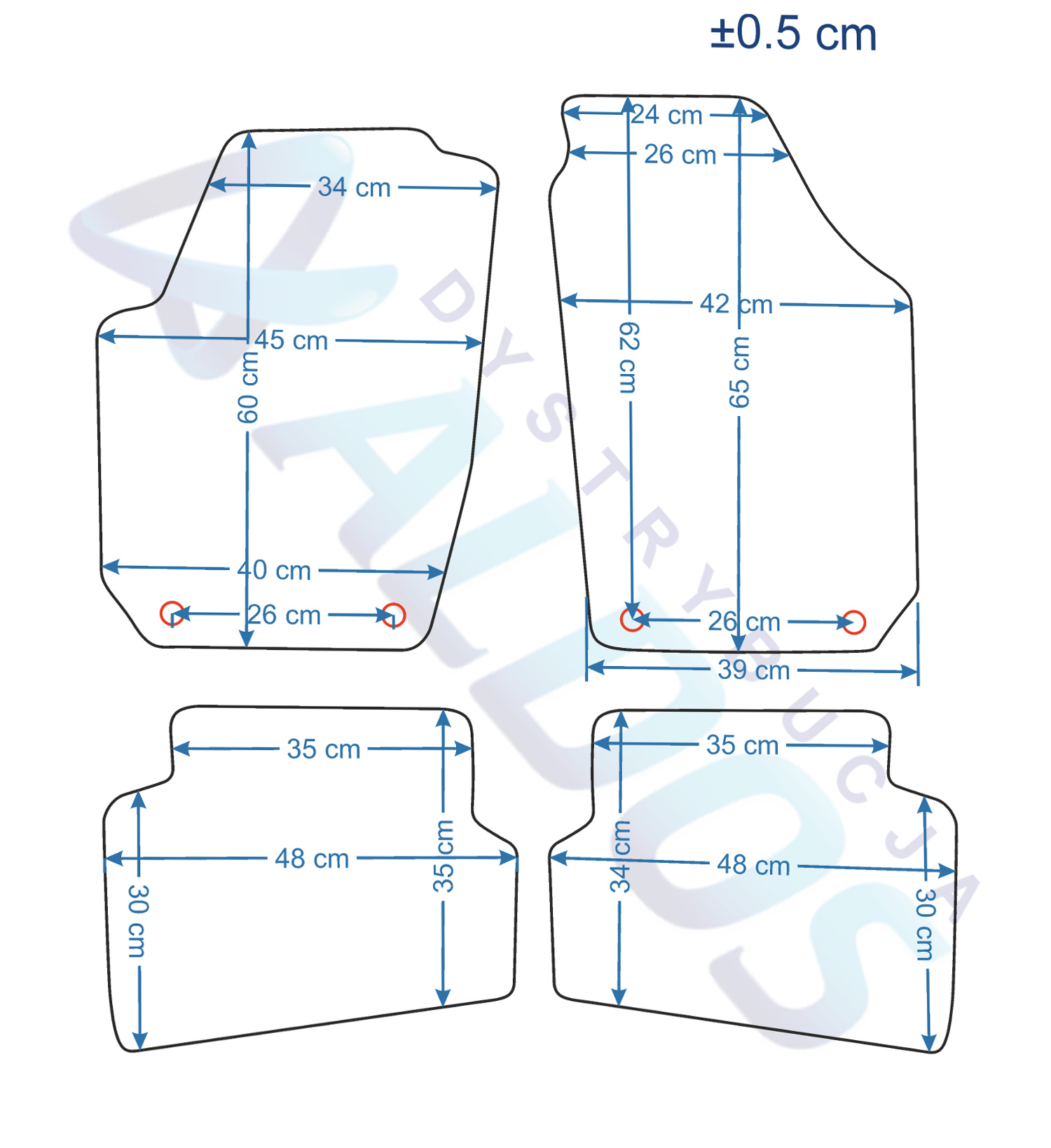 Dywaniki nie są oryginalnymi produktami OEM marki samochodu, a jedynie zamiennikami, które produkowane są przez Niemiecką Firmę PETEX.
